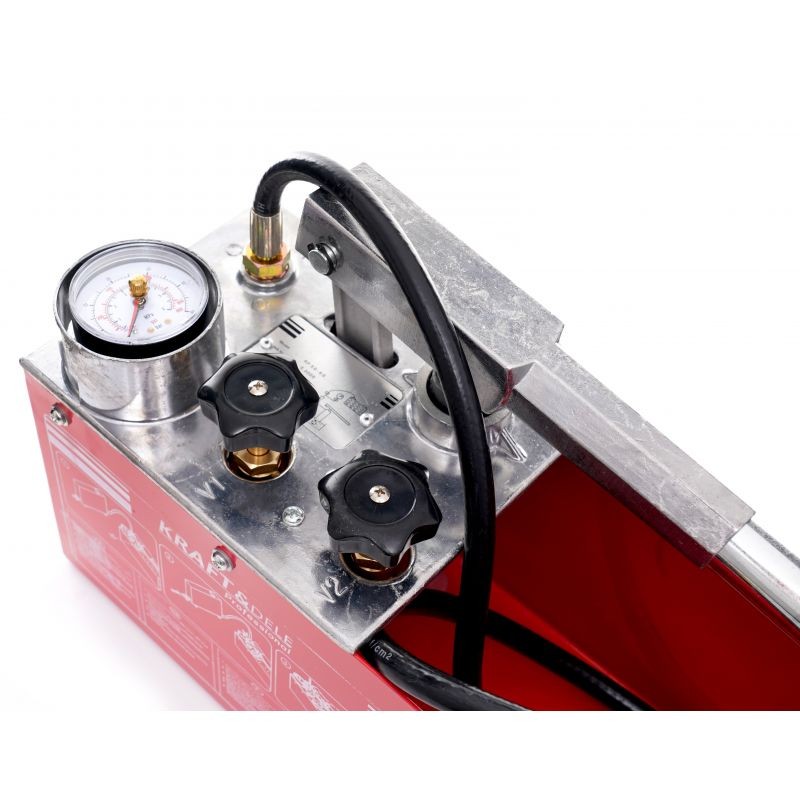 Pompa de testare a presiunii Kraft & Dele model KD10478 este un instrument precis folosit pentru a efectua teste de presiune, teste de scurgere in instalatii sanitare folosind apa sau ulei ca lichid de testare la o presiune de testare maxima de 50 bar.