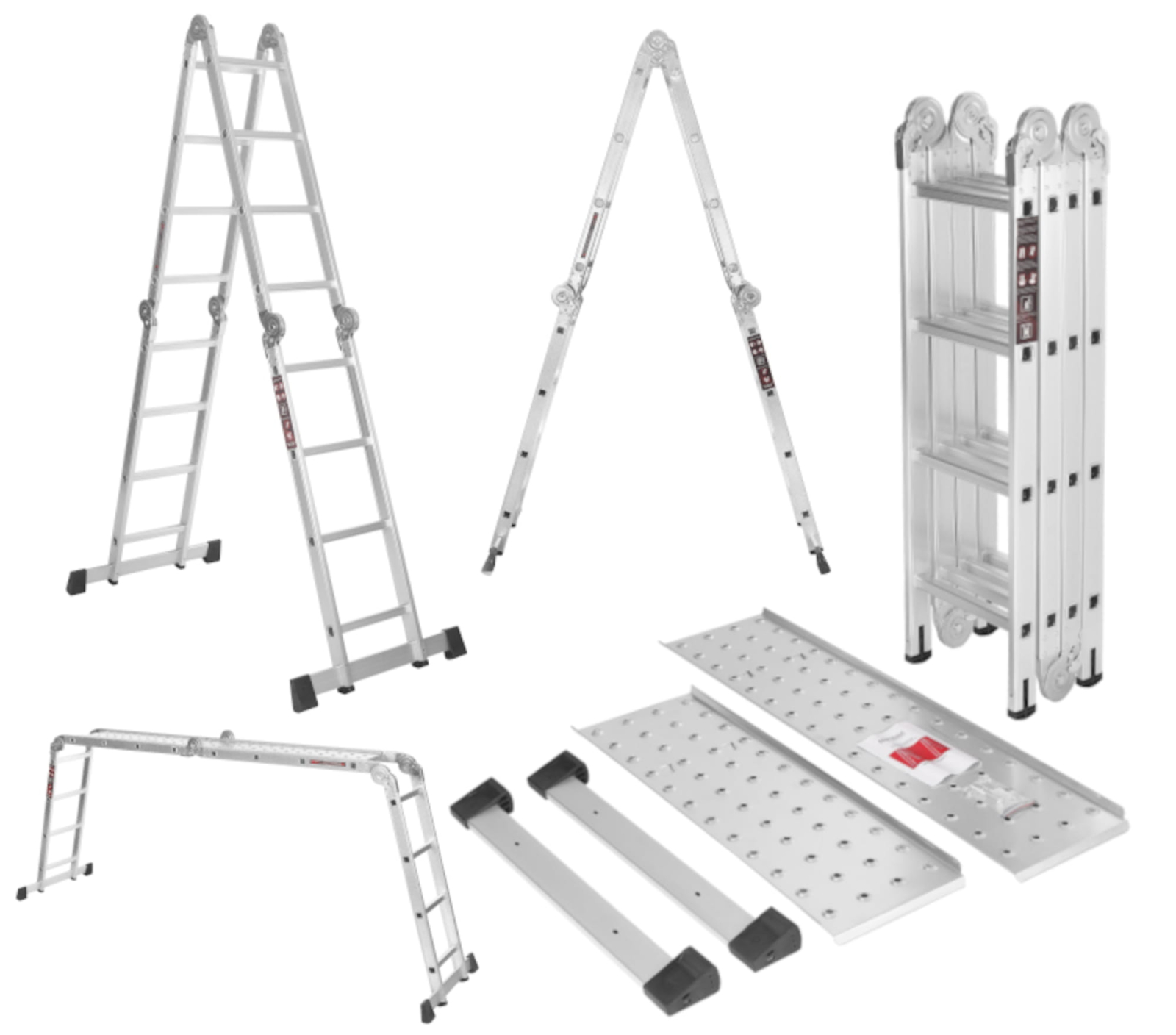 KD4071 este o scară profesională din aluminiu de la KRAFT&DELE, concepută pentru utilizatorii care necesită o unealtă versatilă și fiabilă pentru lucrul la înălțime. Designul său 4x4 înseamnă că scara este alcătuită din patru secțiuni, fiecare echipată cu patru trepte robuste. Această configurație permite o gamă largă de configurații, fiind ideală pentru lucrări de construcții, renovări, grădinărit și instalare.