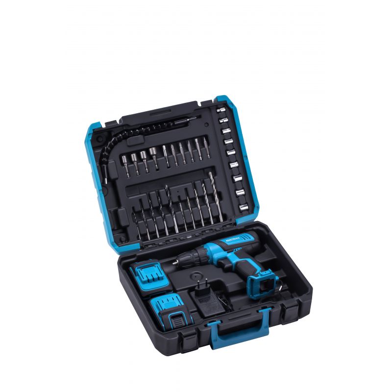 Set masina de gaurit si insurubat cu acumulator si accesorii, 21 V, 2 Ah, Kraft&Dele KD3355