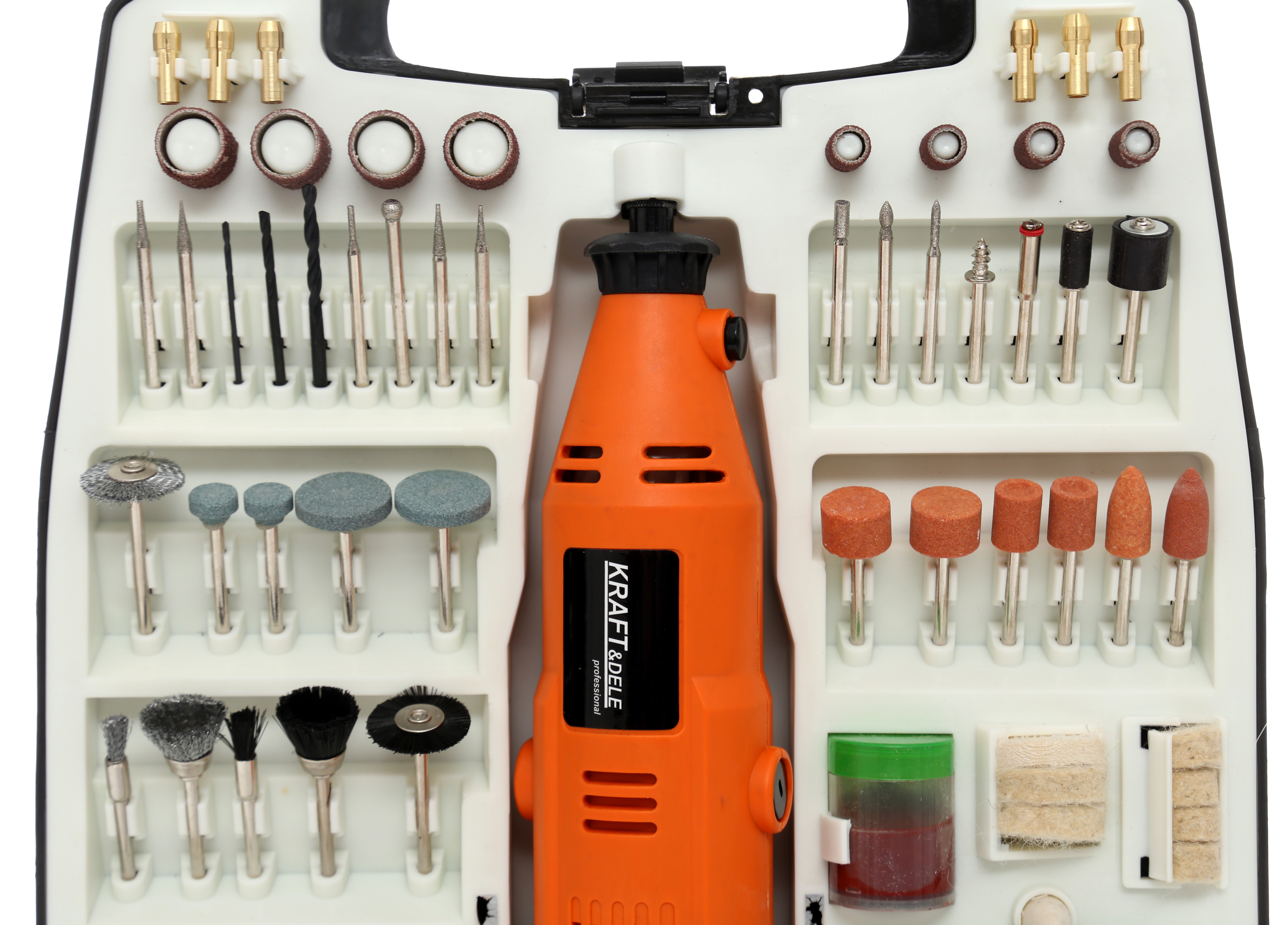 Folosind o poliță multiplă și o gamă largă de accesorii, puteți găuri, șlefui și periai.
