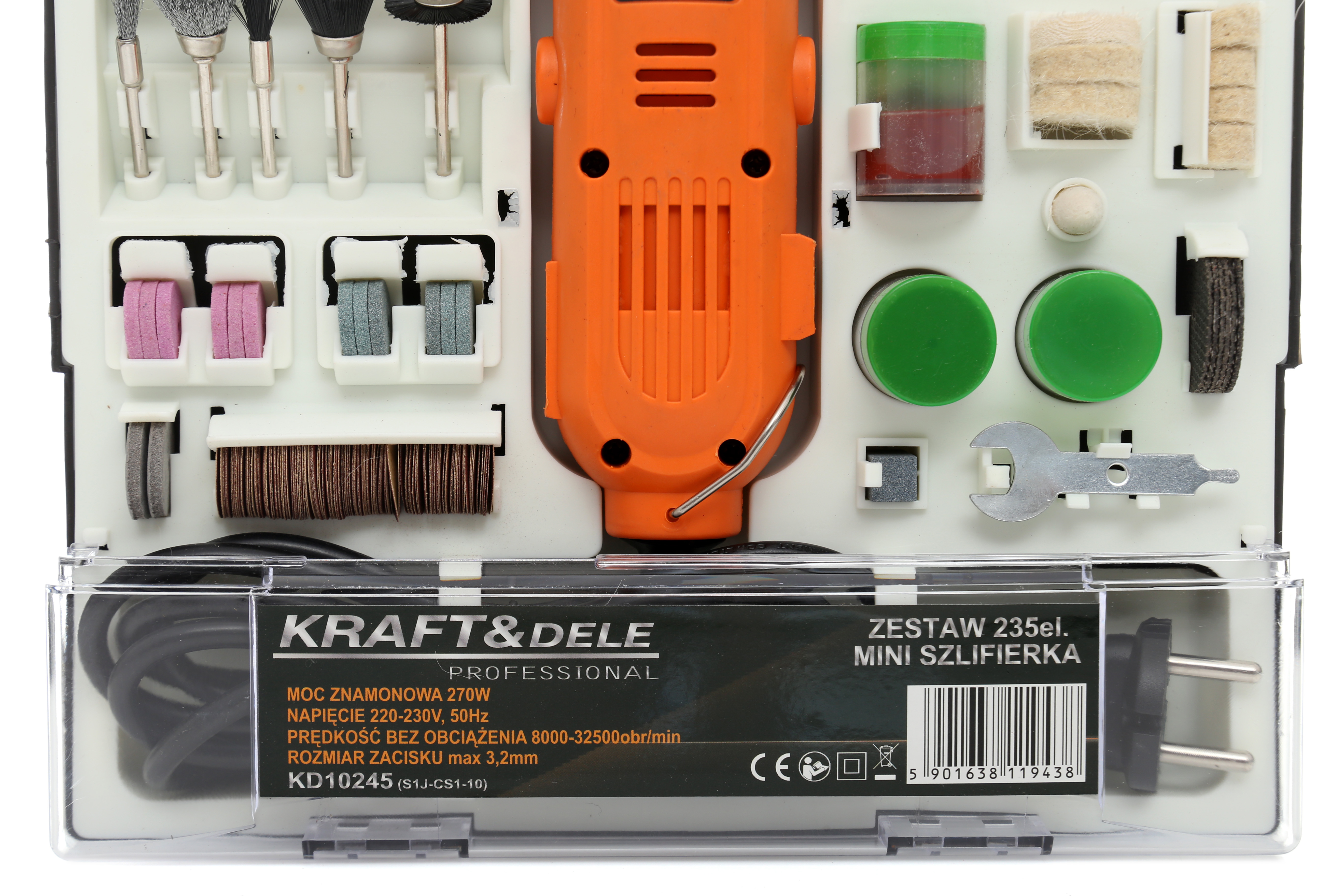 Setul conține 235 de elemente, datorită cărora poți alege vârful de care ai nevoie pentru munca ta. Totul într-un pachet practic. Designul simplu și dimensiunile reduse ale dispozitivului garantează ușurința și fiabilitatea utilizării. Se caracterizează prin precizie ridicată de operare.