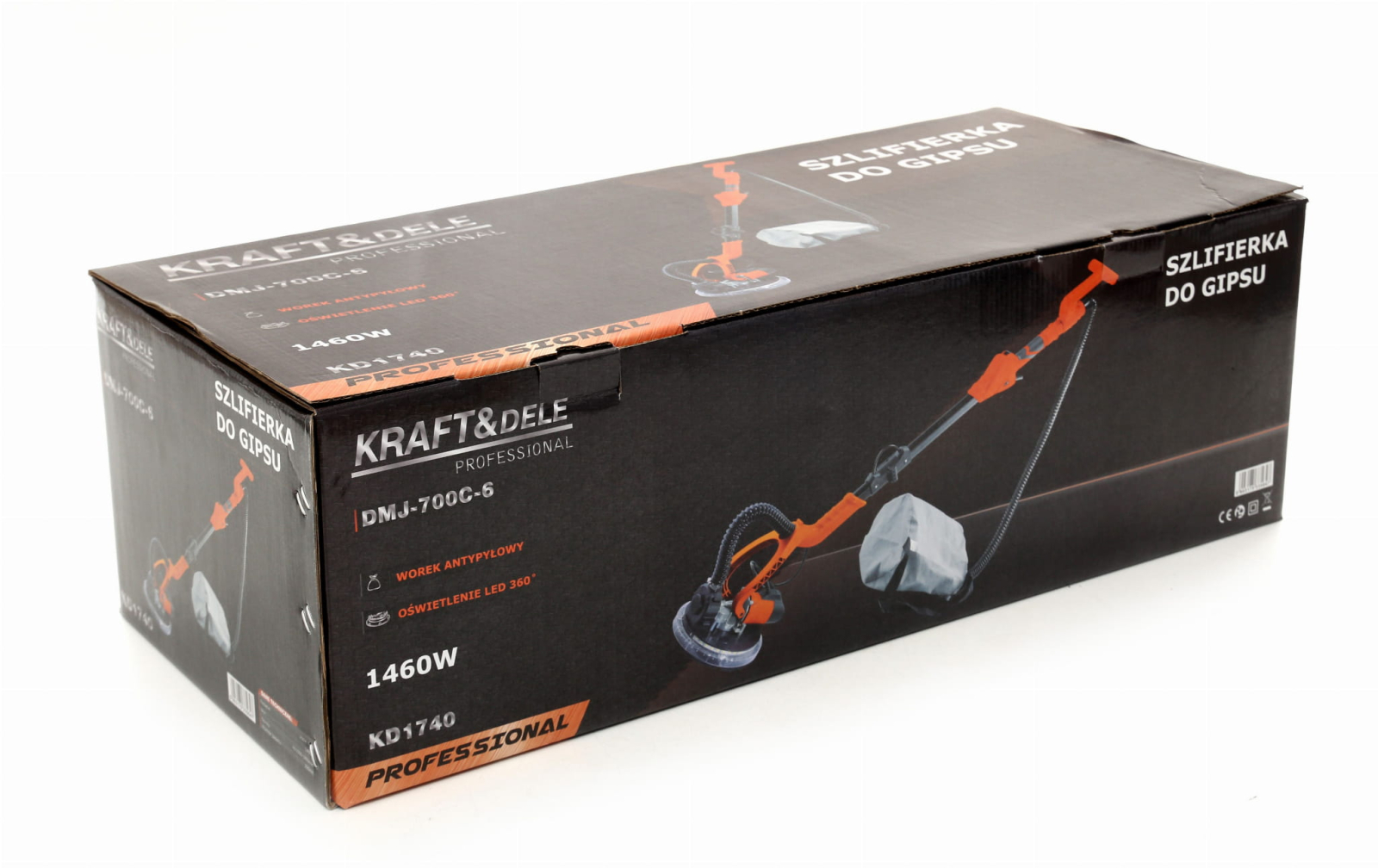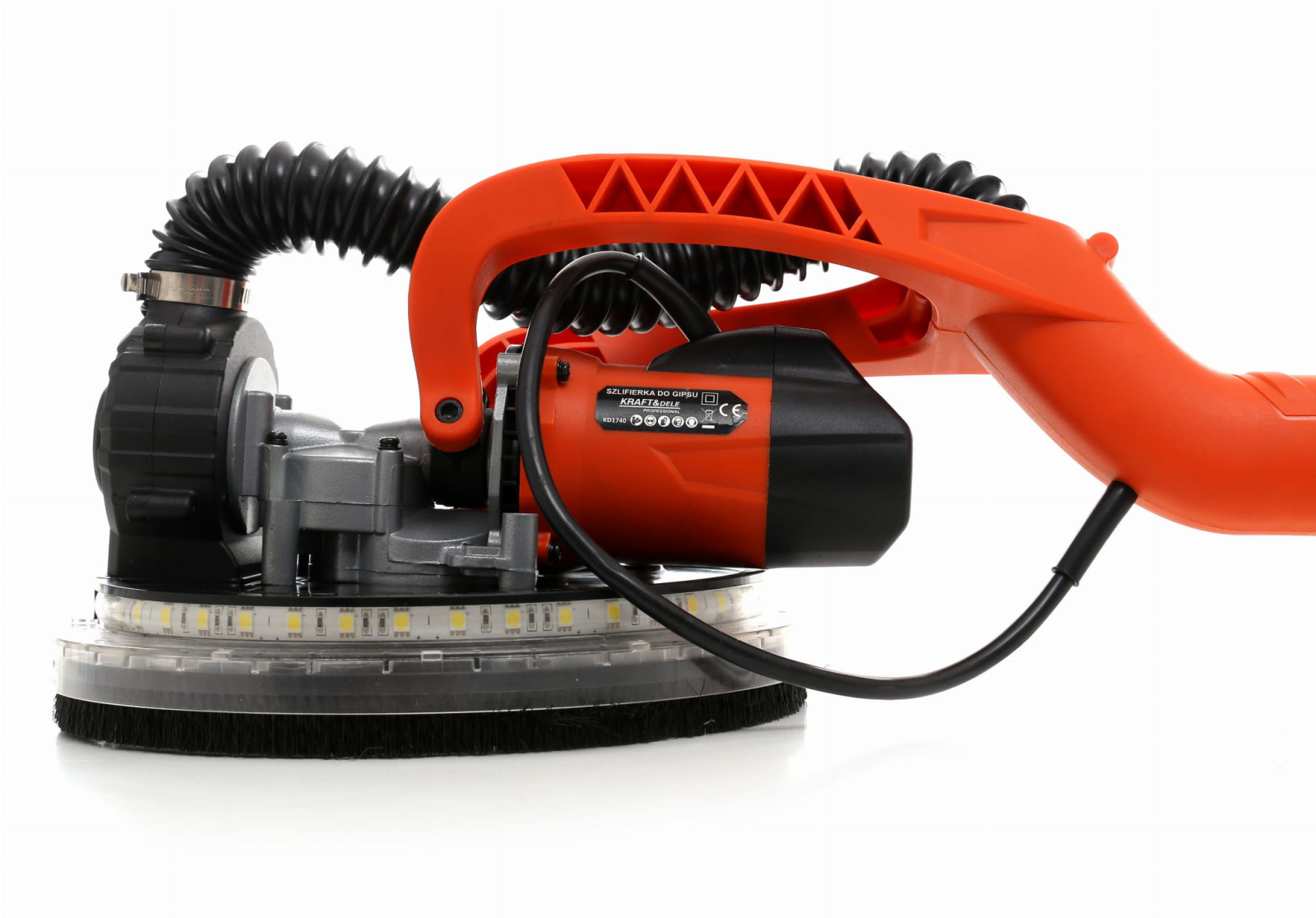 Arborele de aluminiu al dispozitivului poate fi pliat în mijloc, ceea ce face ca dispozitivul să fie extrem de ușor de depozitat. Pe lângă dispozitiv, setul include și șase coli de șmirghel destinate șlefuitorului. Fără praf sau chit! Dispozitivul este echipat cu un furtun care poate fi atașat la aspirator – soluția perfectă pentru a vă menține spațiul de lucru curat!