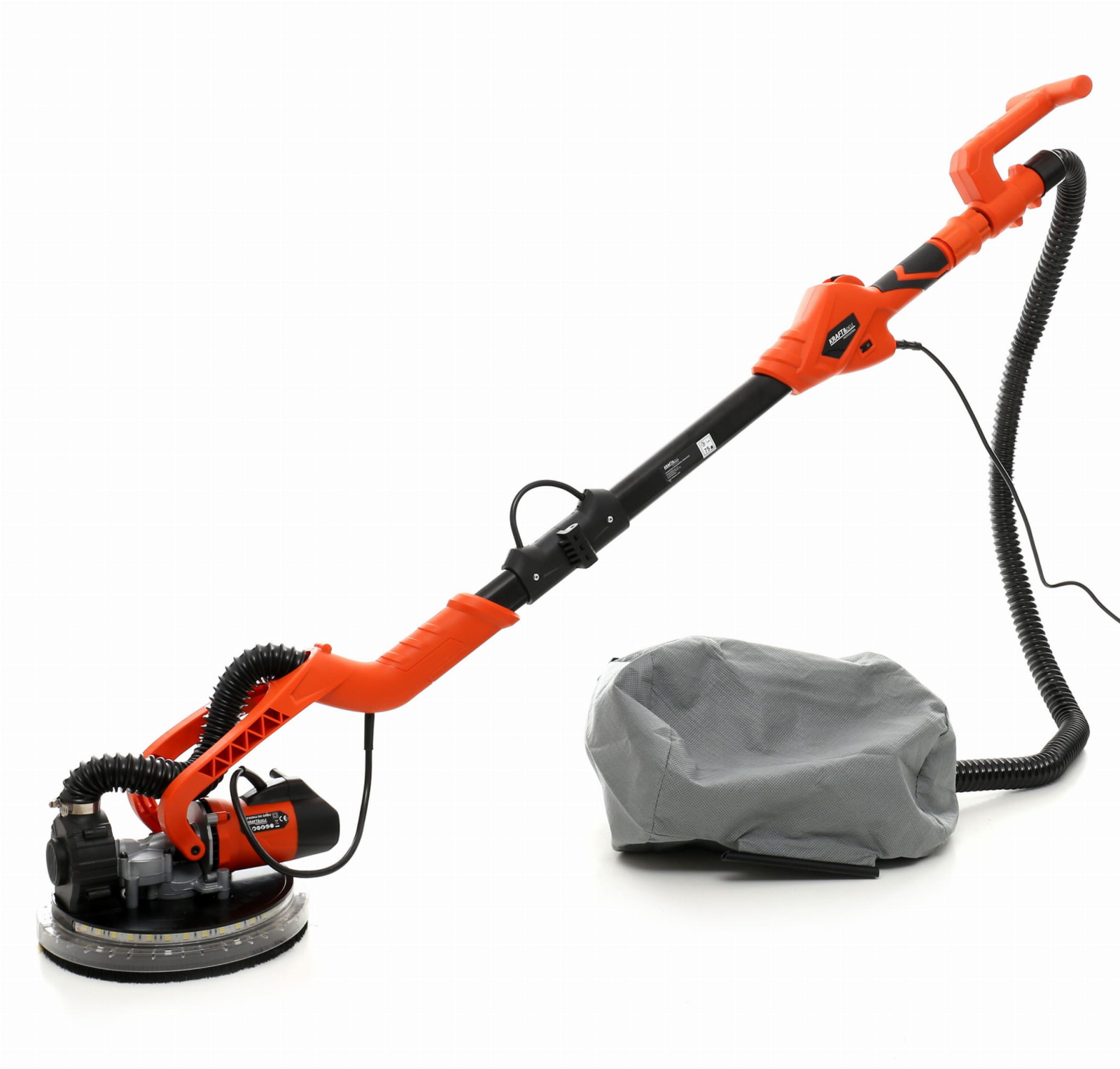 Capul mare de șlefuire este echipat cu un dispozitiv de fixare cu velcro, ceea ce face schimbarea ușoară și rapidă a discurilor abrazive. Datorită capului articulat, munca este confortabilă și ergonomică. Dispozitivul este potrivit pentru toate tipurile de lucrări – înalte și joase. Mânerul telescopic vă permite să adaptați dispozitivul la orice situație! Cu mânerul extensibil pliat, puteți ajunge foarte sus, în timp ce mânerul pliat vă permite să lucrați mai eficient în spații mai mici.