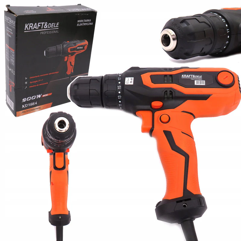 Aparatul este realizat din materiale de cea mai inalta calitate. Dispozitivul este alimentat de la reteaua de 230V, asa ca nu trebuie sa ne facem griji cu privire la incarcarea bateriei. Motorul de 900 W ne permite sa lucram in mod fiabil si in siguranta. Surubelnita va permite sa reglati viteza intr-un interval neted, cu doua trepte. In treapta 1 viteza poate fi reglata in intervalul 0 – 480 rpm, in treapta a doua 0 – 1800 rpm. Poate fi folosita ca burghiu sau surubelnita complet functionala.