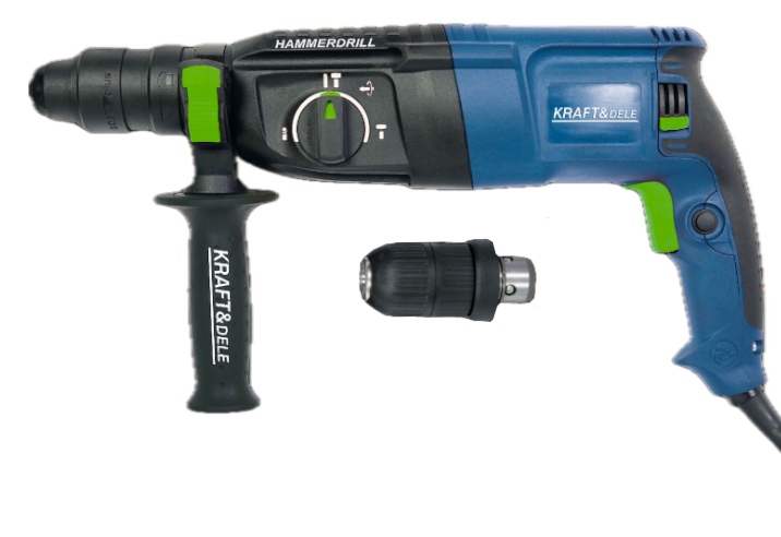Burghiul cu ciocan SDS plus de la renumitul brand Kraft&Dele este un aparat cu motor vertical cu putere si impact sporit. Solid și durabil, funcționează bine în condiții dificile de lucru.