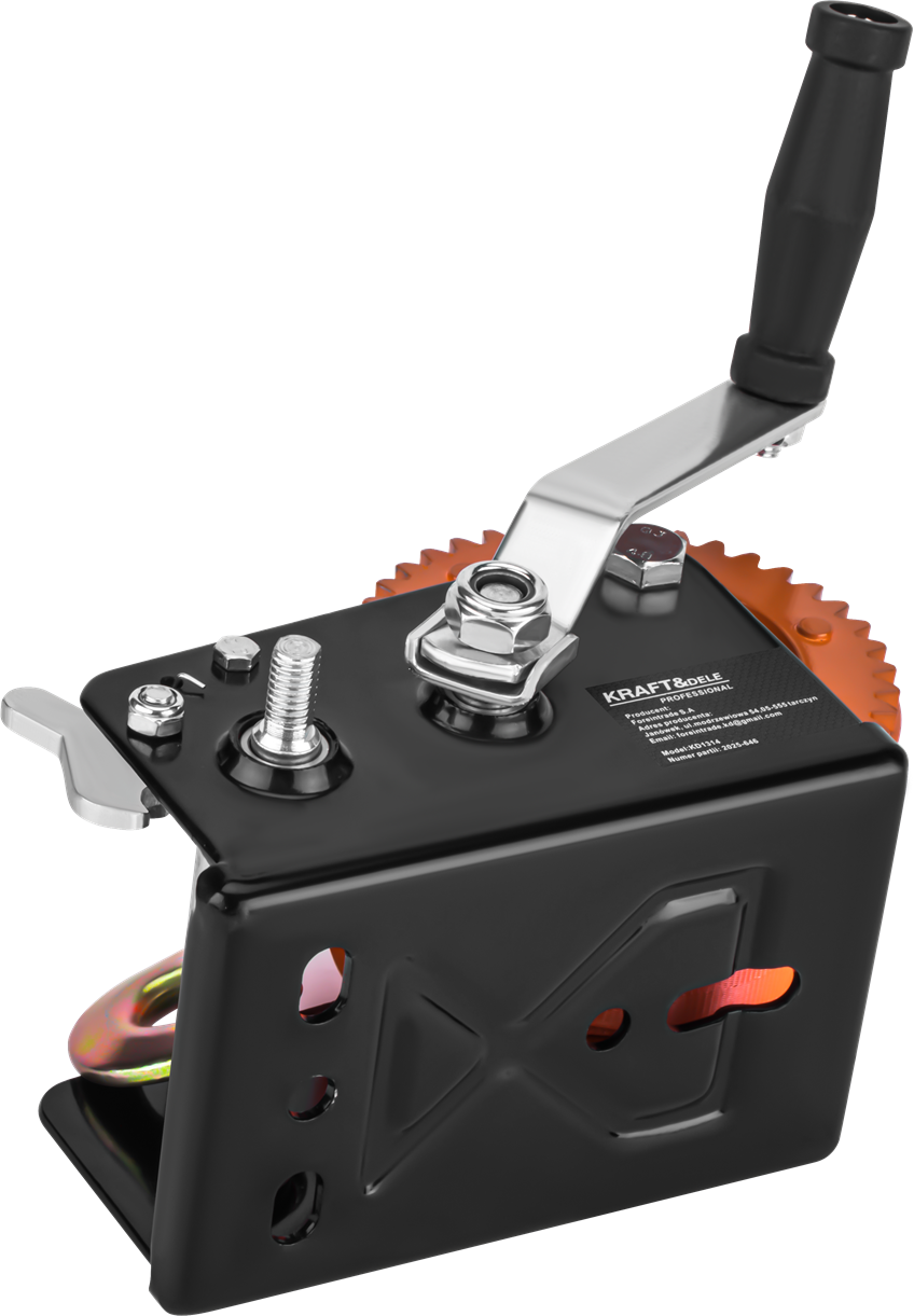 Datorită cârligului său puternic, dispozitivul garantează o fixare sigură și o funcționare lină. Acționarea prin manivelă permite manevrarea sigură a încărcăturii, iar designul stabil al angrenajului crește eficiența și durabilitatea troliului.