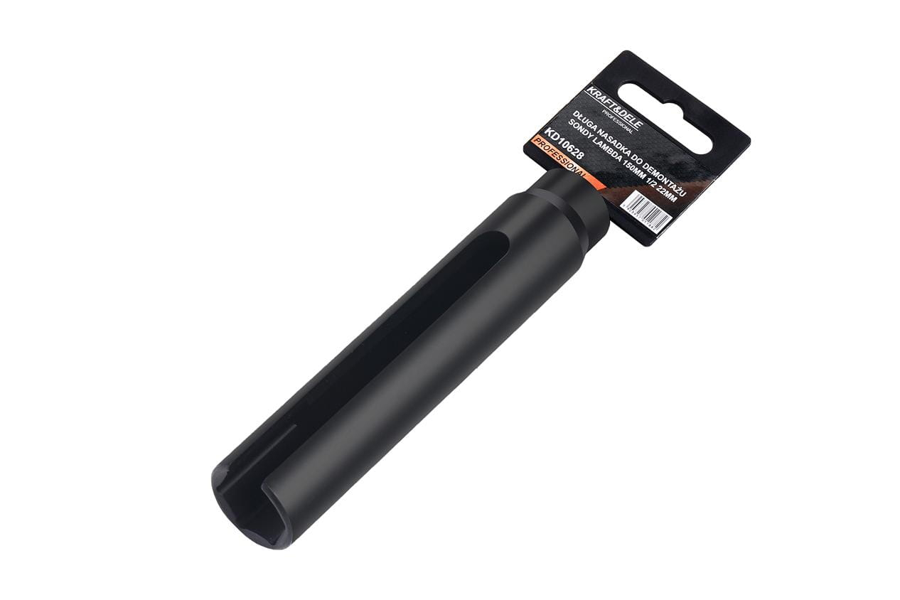 Cheie profesională pentru demontarea sondelor lambda de la marca poloneză Kraft & Dele, model KD10628. Această cheie este concepută pentru instalarea și demontarea sondelor lambda. Avantajul său este lungimea de 150 mm. Designul special al canelurii permite înlocuirea senzorului fără a fi nevoie să demontați cablajul. Este fabricată din oțel CrV durabil. Dimensiune: 1/2" 22 mm.