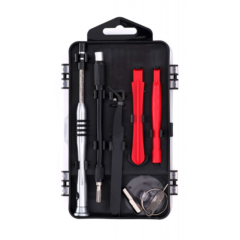 Setul include un suport universal, la capatul caruia sunt montate varfuri inlocuibile.