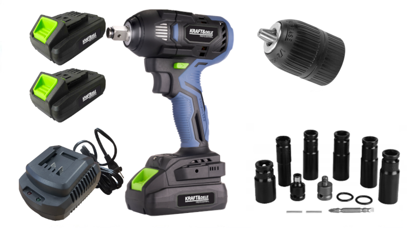 Cheie de impact profesională fără fir de la Kraft&Dele model KD3408. Acesta este un set esențial pentru fiecare pasionat de bricolaj și profesionist deopotrivă. Set conceput pentru înșurubarea și deșurubarea șuruburilor, precum și pentru găurirea în lemn, metal, ceramică și materiale plastice.