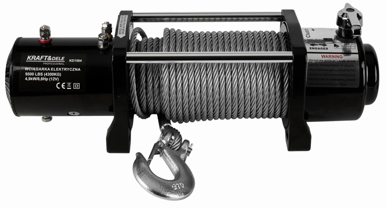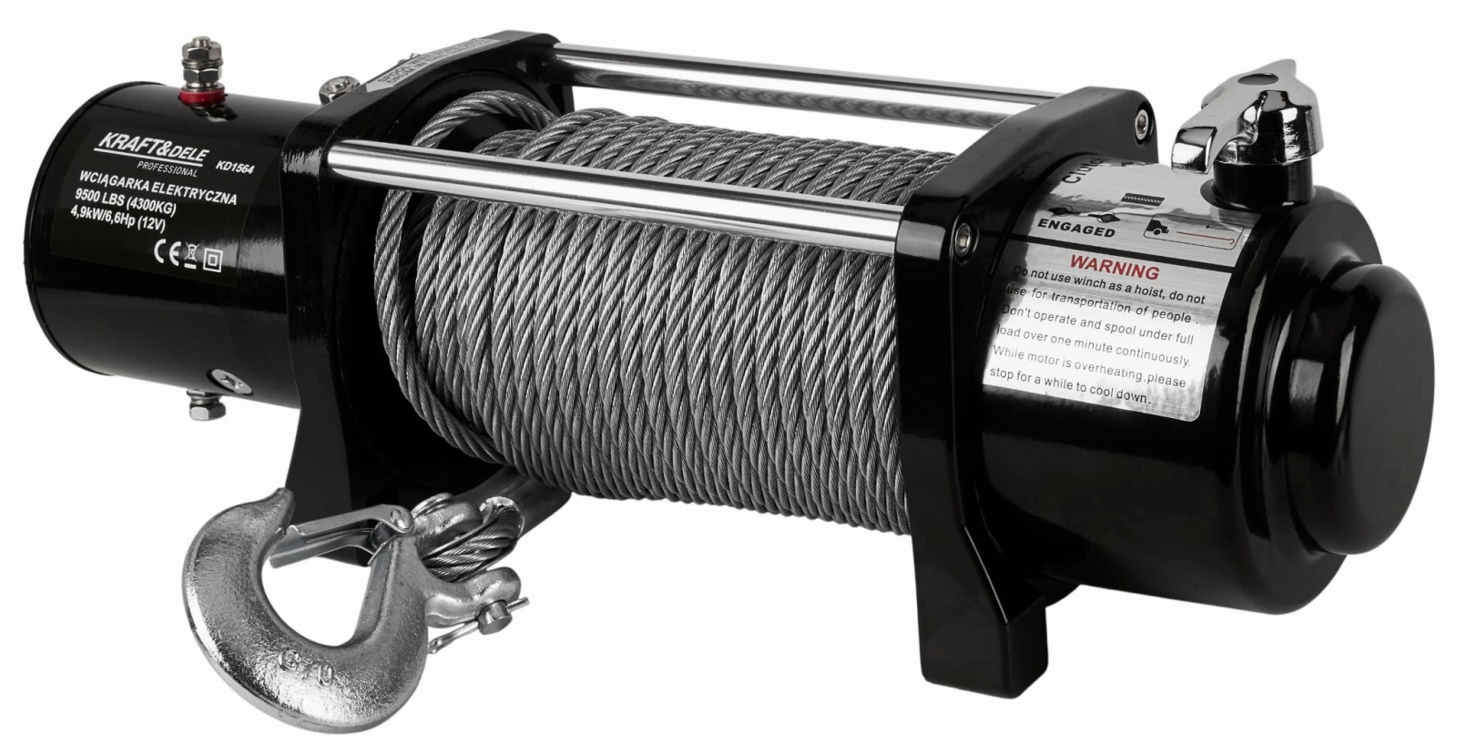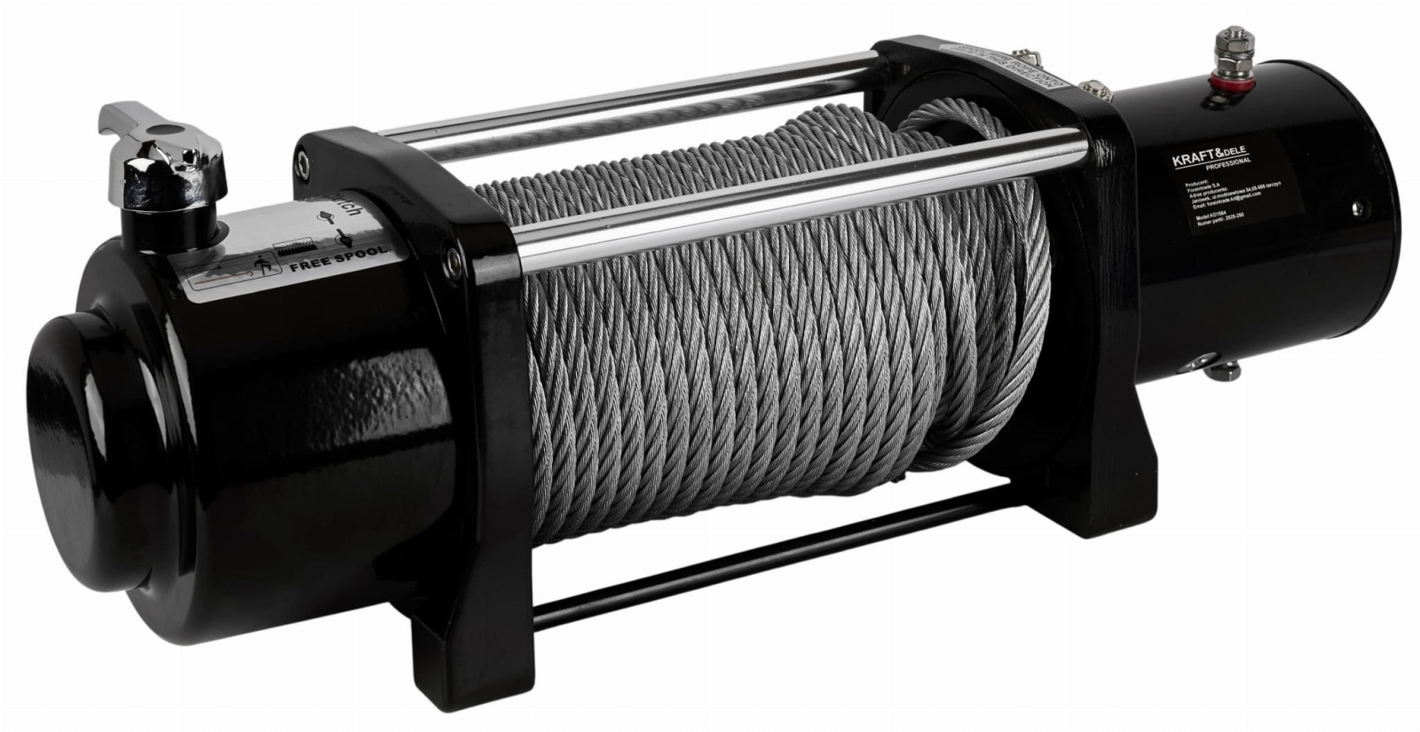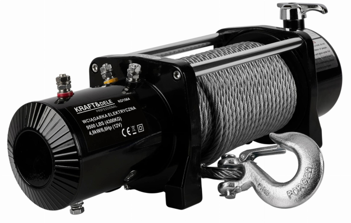 Un troliu profesional de la Kraft & Dele cu o capacitate maximă de ridicare de 4,3 tone. Această capacitate de ridicare permite utilizarea ușoară în condiții extreme, off-road, pentru tractarea mașinilor, ATV-urilor, tractarea vehiculelor pe remorci și în accidente auto.