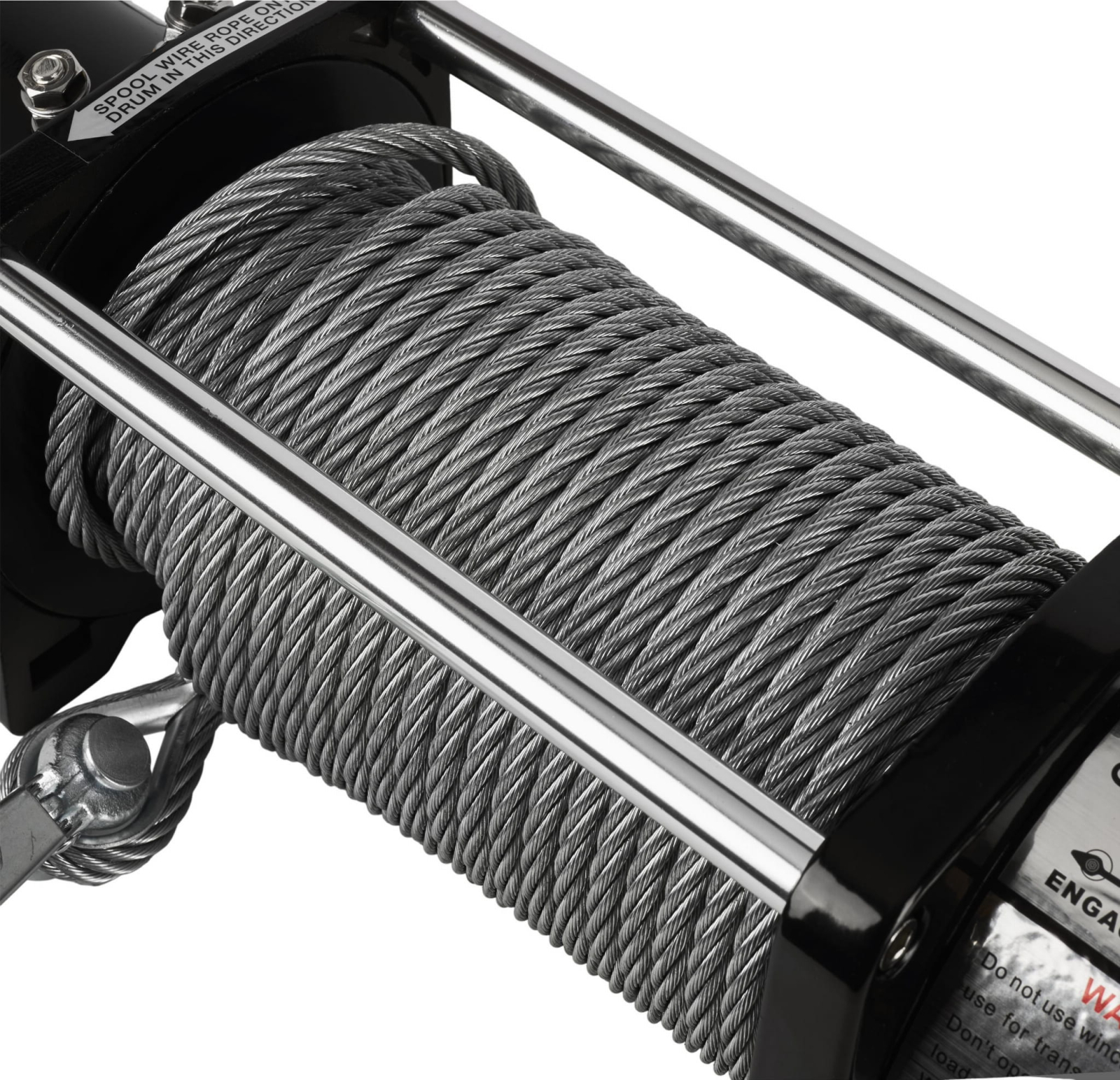 Cablul de oțel cu diametrul de 8,3 mm este foarte durabil și poate suporta până la 4.300 kg și se termină cu un cârlig de oțel indestructibil . Un ambreiaj de nouă generație permite desfășurarea cablului fără a fi nevoie să activați dispozitivul.