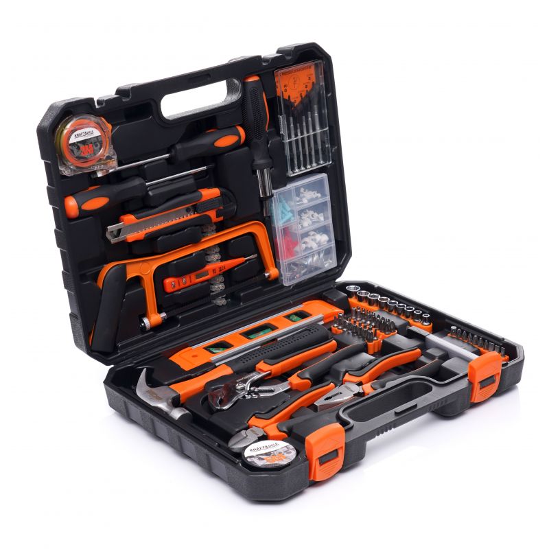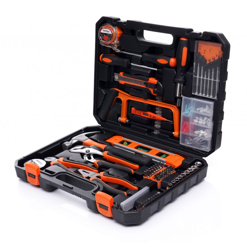 Întregul set este format din 100 de elemente diferite care asigură instrumentul potrivit nevoilor dumneavoastră. Sculele sunt realizate din