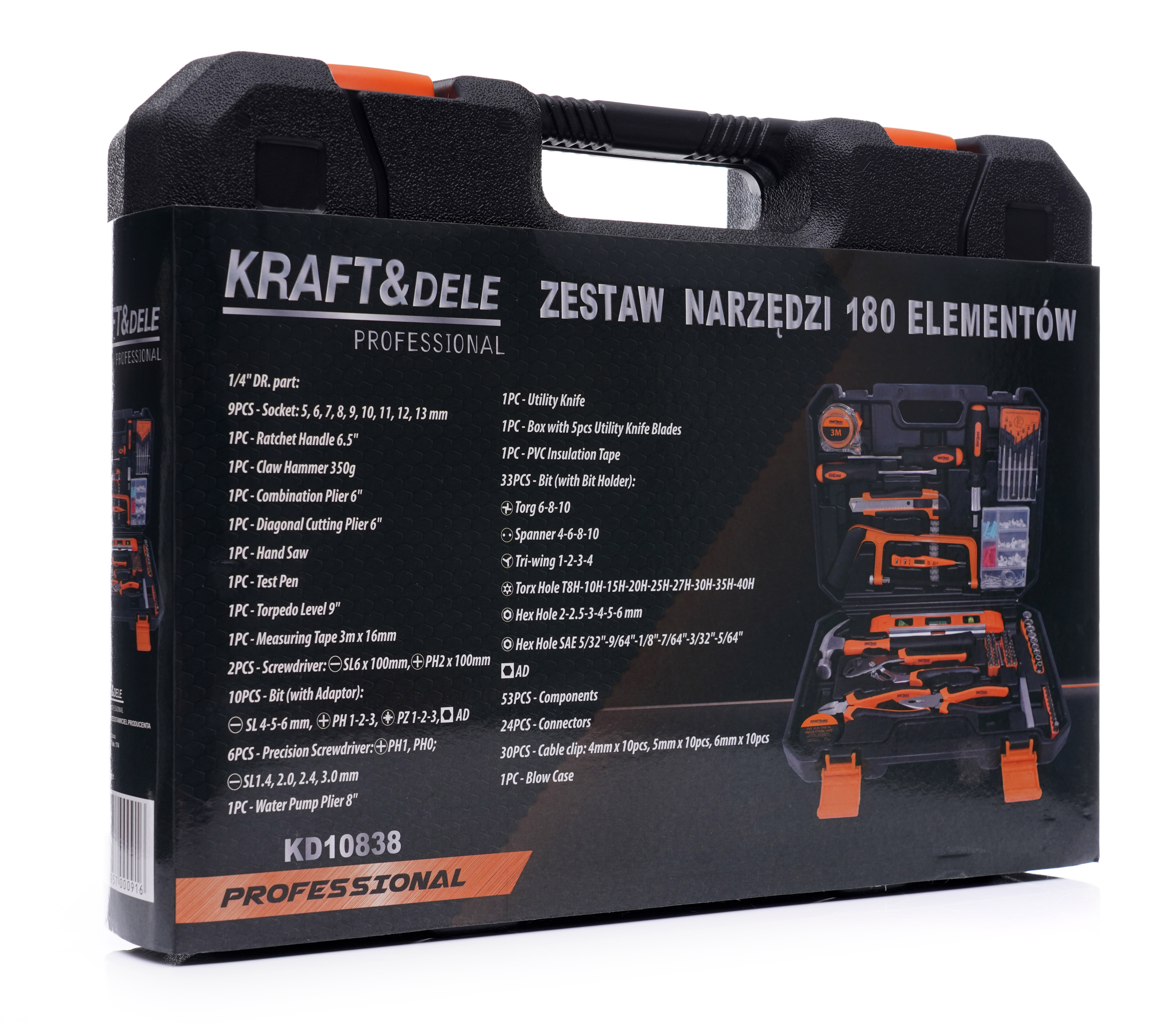 KD10838. Uneltele se caracterizează prin manopera solidă, materiale durabile și o carcasă la îndemână în care fiecare unealtă își are locul său.